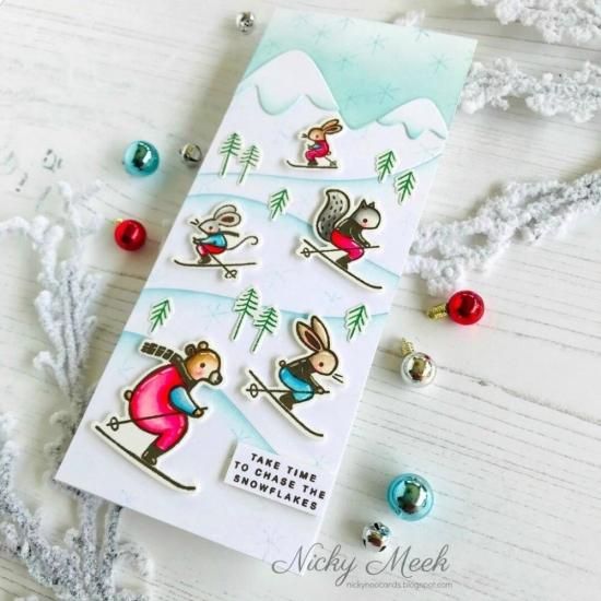 【セット】Pinkfresh Studio Skiing By クリアスタンプ 4"X6" PFCS2819 & ダイ PFCC2819