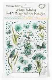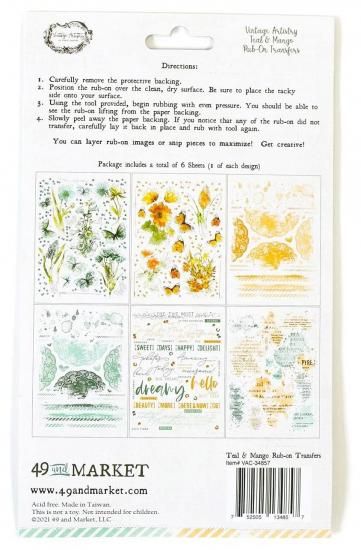 【49 & Market】Vintage Artistry Teal & Mango Rub-Ons 6"X8" 6/Sheets VAC-34857