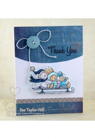 4x6 Clear Stamp Set | Snowman 2.5" x 2.25" | Hill 3.5" x 1.5" | Animals on Sled 3" x 2"