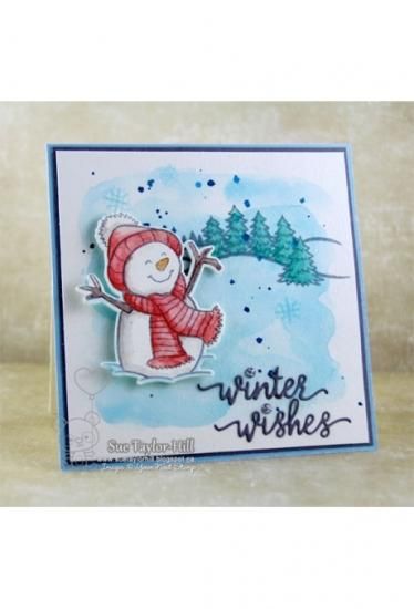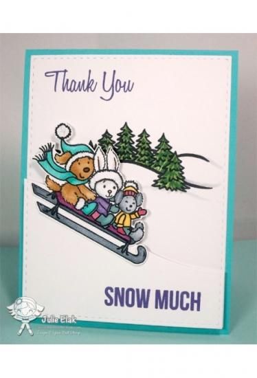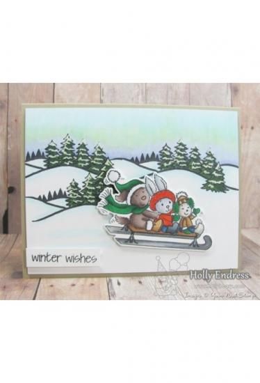 4x6 Clear Stamp Set | Snowman 2.5" x 2.25" | Hill 3.5" x 1.5" | Animals on Sled 3" x 2"
